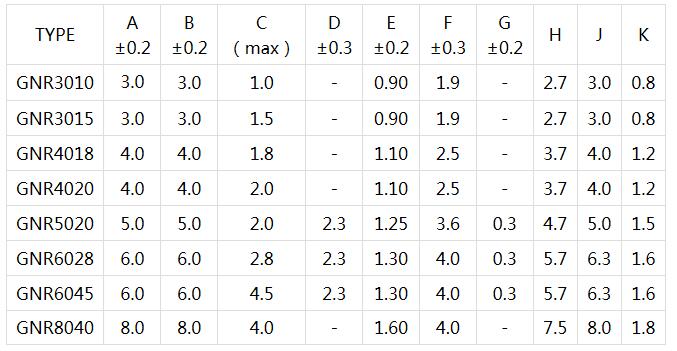 三、電感GNR封裝尺寸(UNIT:?mm)