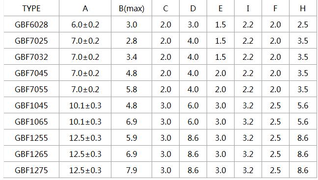 三、貼片繞線電感GBF封裝尺寸.(UNIT: mm)